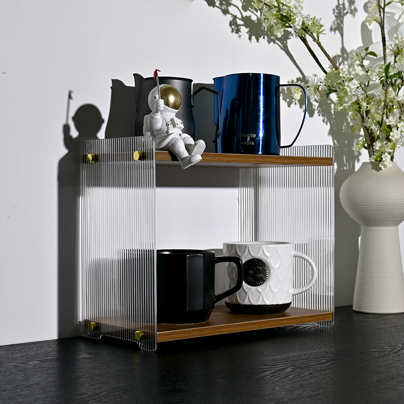 Our cup holders combine plexiglass with solid wood, offering a variety of wood options such as paint-free solid wood boards, walnut, and finely sanded pine logs. The wood is treated with wax oil, making it waterproof and moisture-resistant, while providing a smooth, delicate texture. They serve both storage and display purposes—perfect for neatly organizing cups or enhancing home decor. They can also be used as organizers for photo frames, small plants, or decorative items, elevating the aesthetic and quality of your living space. The striped acrylic design adds a hazy elegance with a translucent yet non-transparent finish, making the product lightweight and easy to handle without feeling bulky.